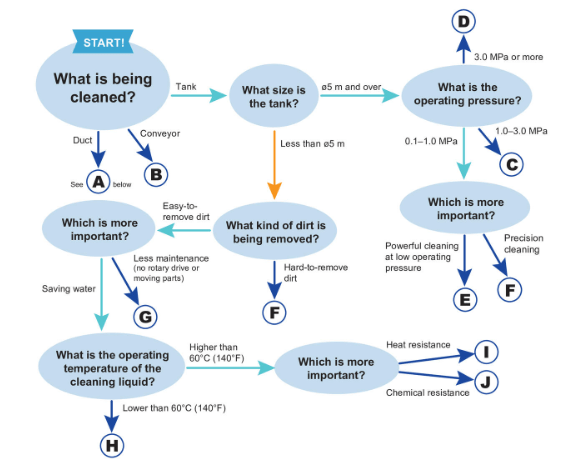 Nozzle selection guide: Find your ideal tank cleaner based on usage and cleaning objectives: