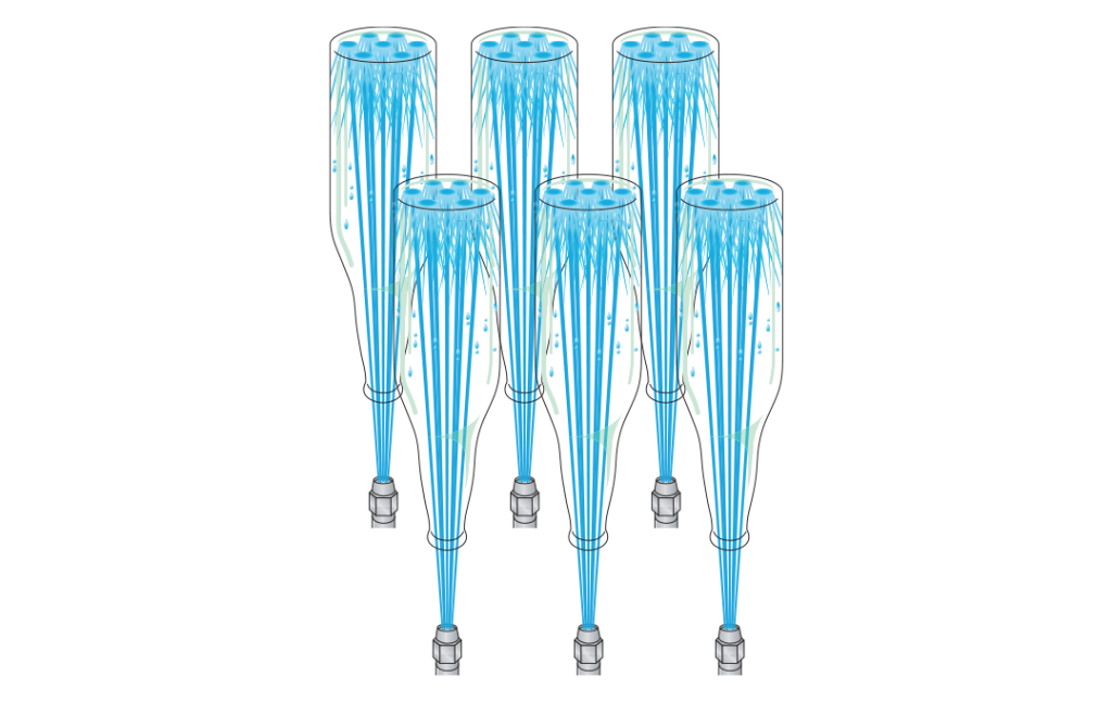 The 7-CP-series is a strong bottle cleaner with seven solid streams with a high impact force. The spray nozzle has a compact design and is an easy and cost-efficient bottle cleaner to implement.
