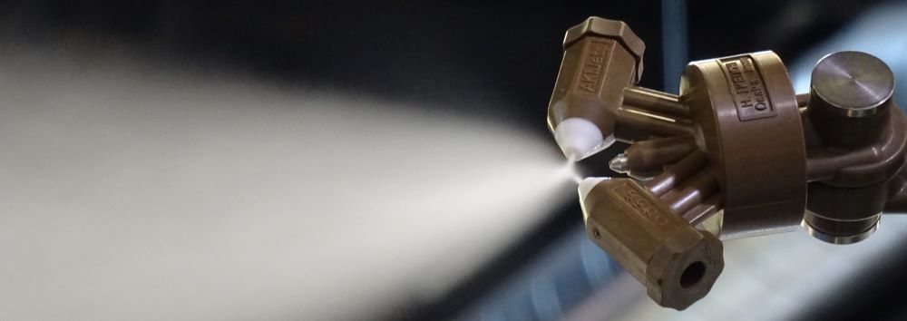 AKIMist® is a Japanese invention which is known for its tiny droplet size. The droplet size is around 7.5µm, which means that they can easily capture ammonia particles and dust particles without wetting the surroudings and the livestock. AKIMist is very easy to install to either a ceiling or wall depending on the stable structure. It also requires very little maintenance and it is highly wear-resistant.
