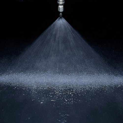 Hydraulic spray nozzles, also known as single-fluid nozzles, atomize liquids by forcing them through a small orifice at high pressure. The droplet size of the hydralic nozzle is directly influenced by the liquid pressure. Higher pressure generally leads to smaller droplets. Hydraulic nozzles can produce different spray patterns, including flat fan, solid stream, full cone, and hollow cone.